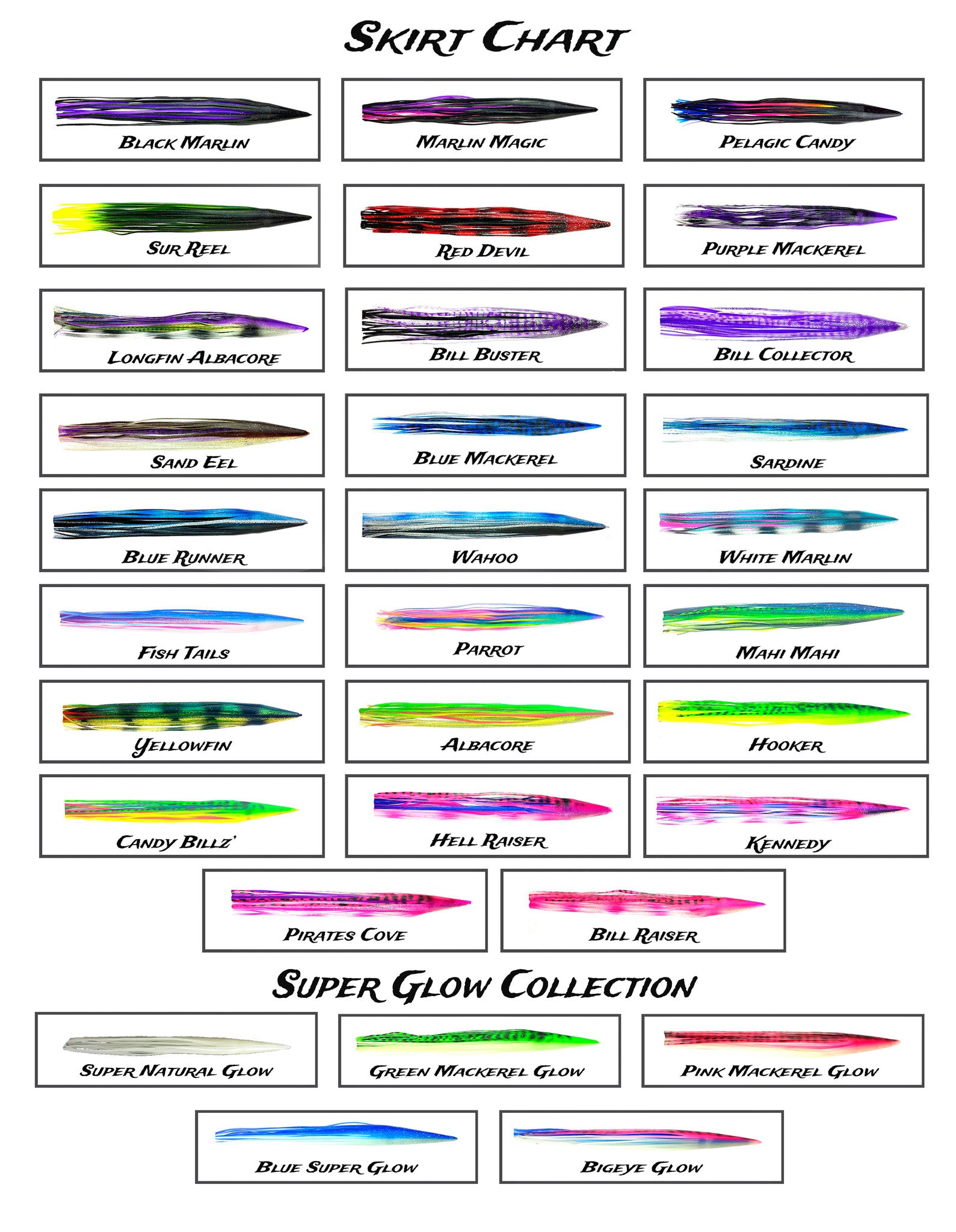 The Lobo Lures Black Marlin Trolling Packs come in a variety of color combinations with the ability to customize them for no additional cost. They feature a Pelagic Magic, Chaos and Typhoon!