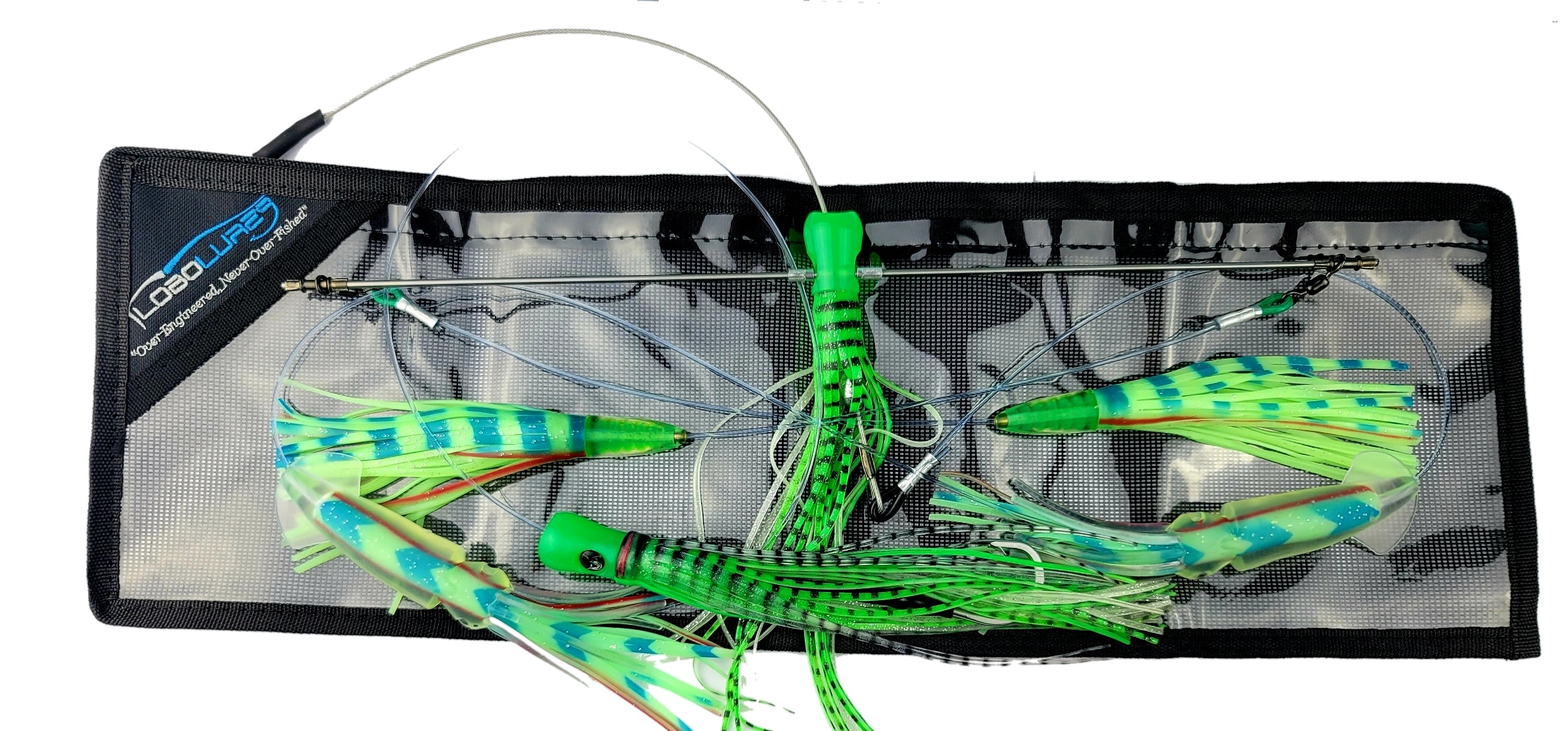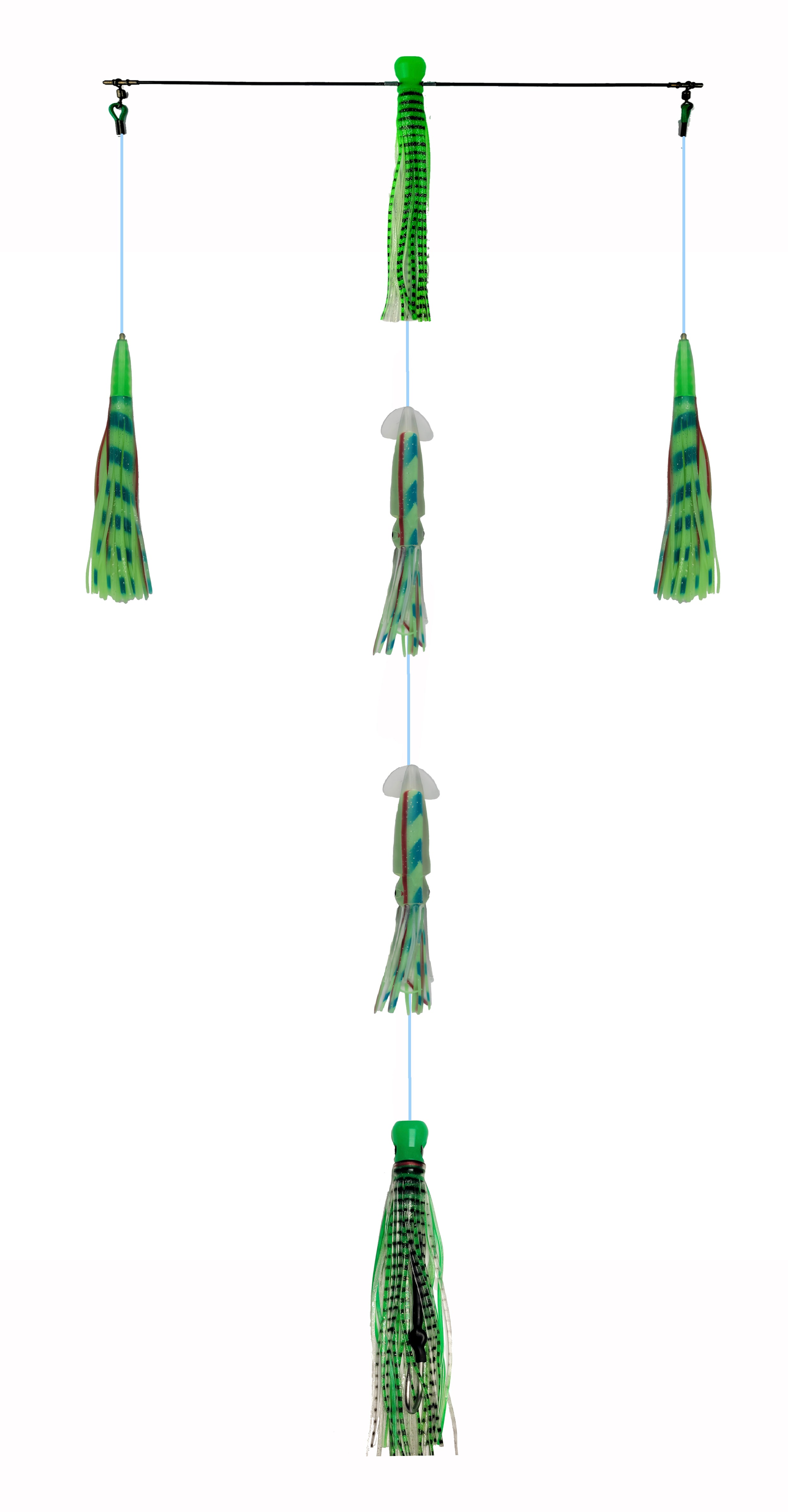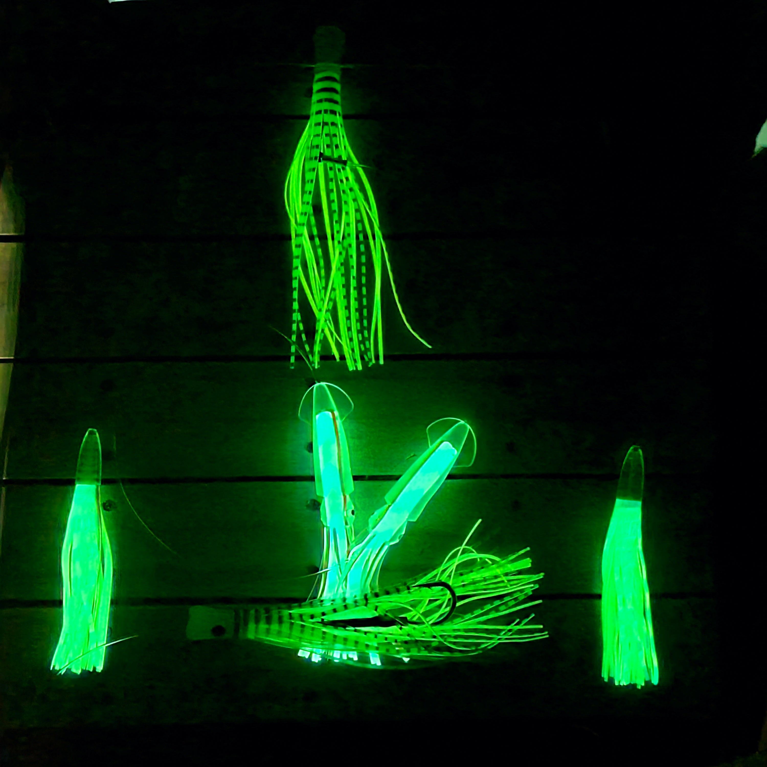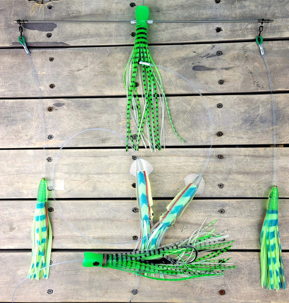 - Main Line 2- 8"Lumo Squids Hybrid Heads and a 9.5" Skipjack Stinger!