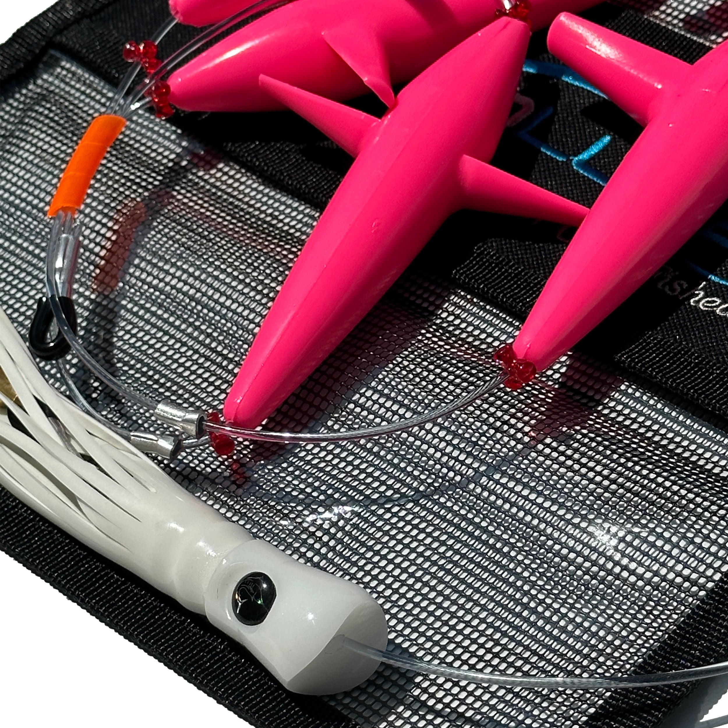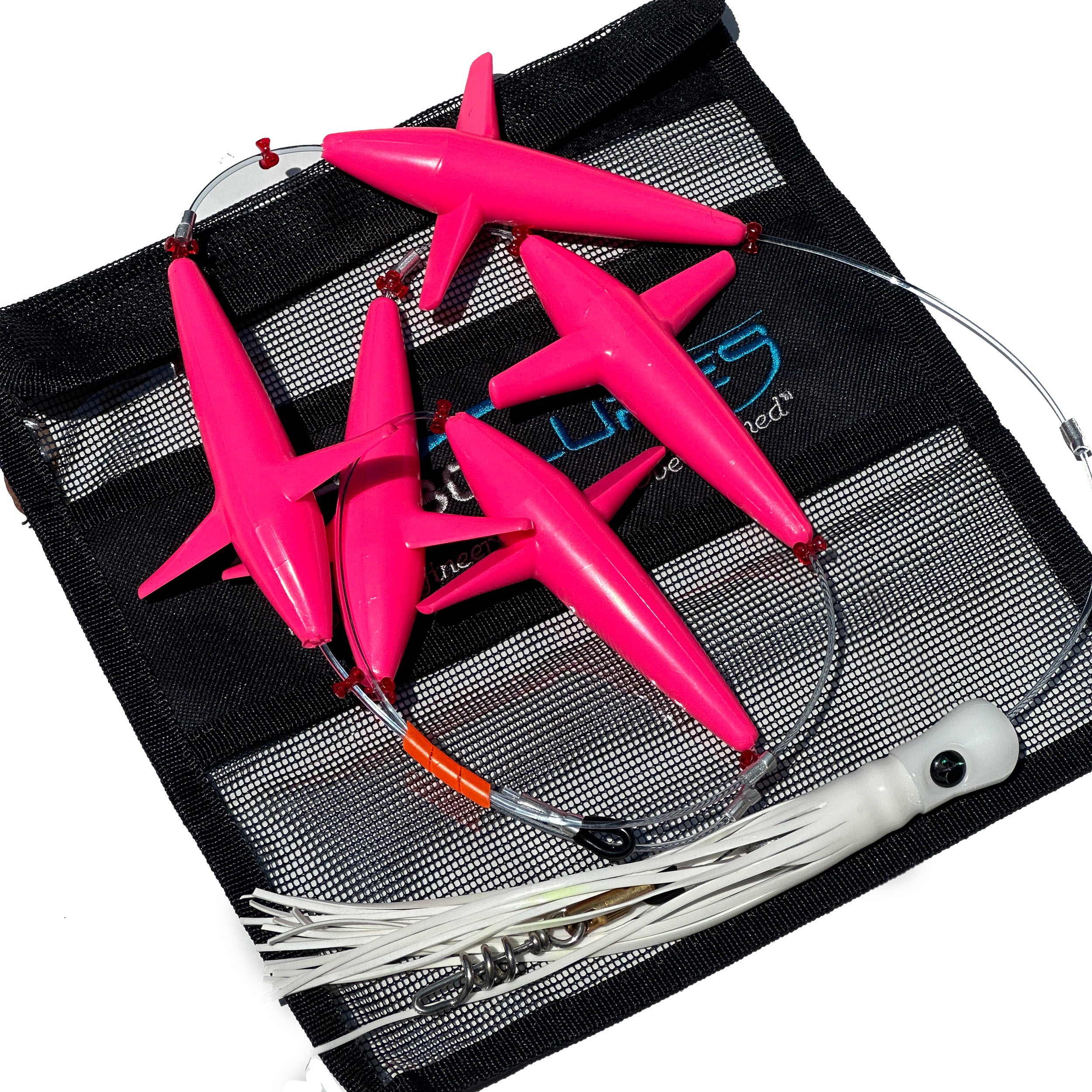 - THE BAITS: Five individual 5" teaser birds in a line creating the commotion portion of the Daisy Chain and tailed by a Skipjack Hybrid hiding the corkscrew swivel!