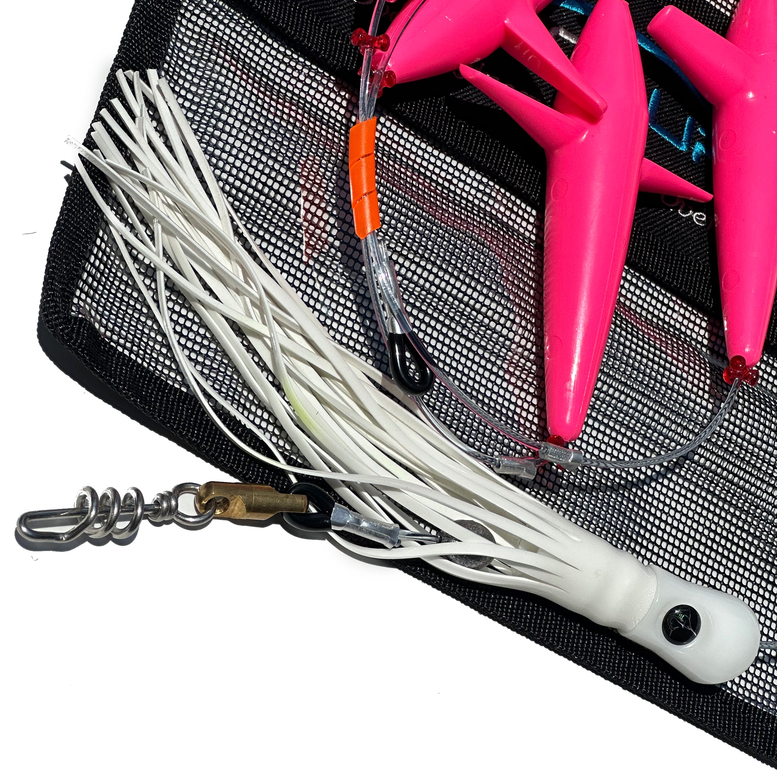 - THE RIGGING: Rigged using 7' of 400lb Momoi Leader and a 500lb Aussie Style Corkscrew swivel for ease of changing your stinger baits!