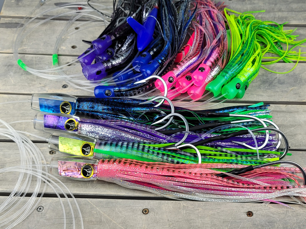 • Kit includes our Skipjack Hybrid Daisy Chain with 500lb leader and Corkscrew swivels to interchange Typhoon Stingers.  Patent Pending Skipjack Hybrid