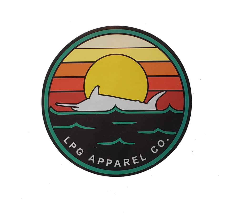LPG Apparel Co. Round Retro Marlin Sunset Sticker Pack They are ideal for you boat, car, cooler, truck or where ever you want to show you fishing pride!